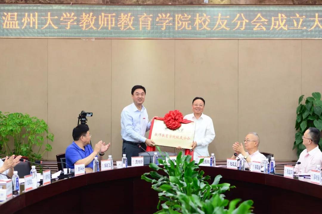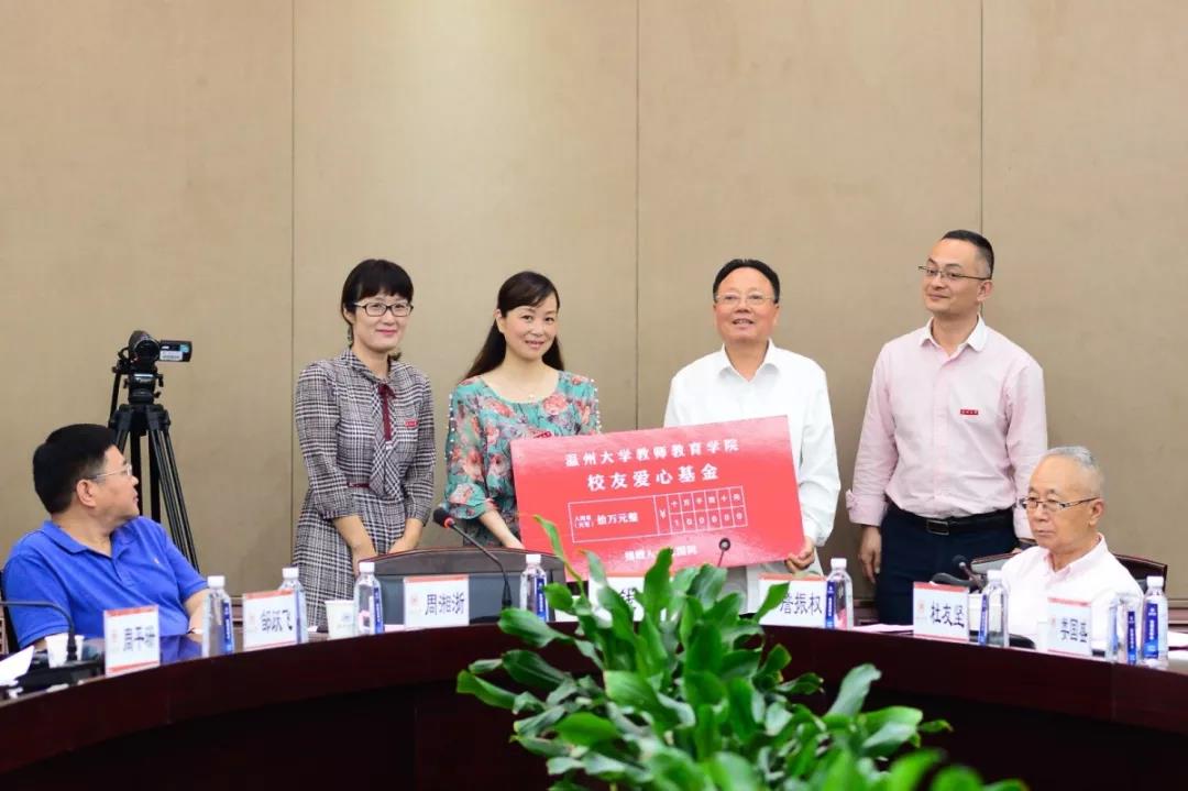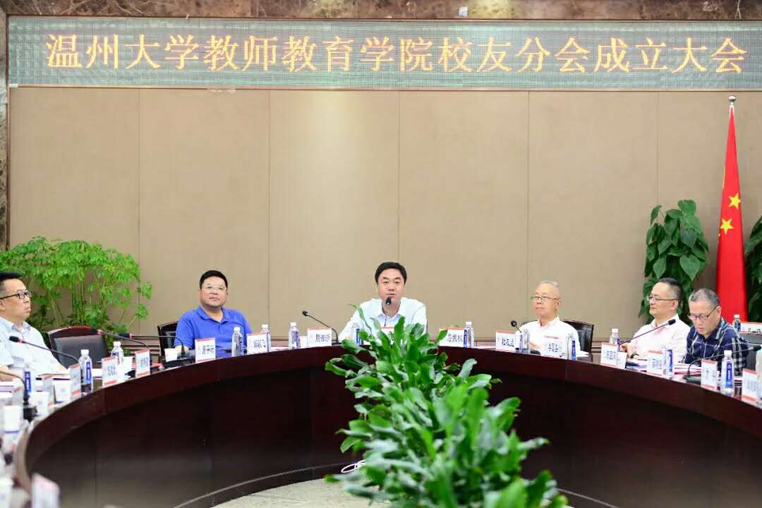 会议审议通过了《教师教育学院校友分会章程》(草案)和第一届理事会及负责人建议名单。浙江红绿蓝教育集团董事长、总裁陈国同先生当选为温大教师教育学院校友分会首任会长。温大副校长钱强老师为校友分会授牌,陈国同老师深情地讲道:“参天之树,必有其根,长流之水,必有其源。母校是我们成长的摇篮,是我们心灵的港湾,也是我们人生征程的起点。”他表示,对学院和各位校友的信任最好的回报,就是尽心尽力做好这份工作,建立健全完善理事会的工作机制,发挥理事会的重要作用,搭建广大校友与母校、校友与校友之间的沟通交流的桥梁,凝聚校友与母校的情感,促进校友和母校的共同发展。为今后更好地开展校友联谊互动、帮助需要帮助的校友师生、创建教师教育学院校友分会的特色品牌活动,陈国同老师倡议设立教师教育学院“校友爱心基金”,并捐赠首笔爱心基金10万元。