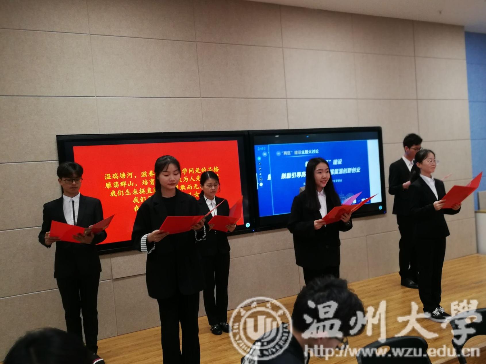 当前,温州再一次站在了一个承上启下、改革创新的关键时期、重要阶段。在这样的形势下开展大讨论是及时、必要,也是非常有意义的。在温高校,姓“温”,也必须为“温”,自觉地承担起未来企业家培养、服务地方的职责使命,把人才培养与助力“两区”建设结合起来,鼓励引导毕业生留温在温创新创业,是在温高校可以做、应该做,也必须做好、做扎实的事。