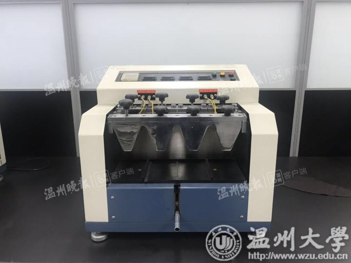 开放式的实验室向社会企业提供实验设备支持与技术咨询服务,为企业的研发工作提供众多便利。记者走访了位于皮革科技大楼二楼的皮革测试室,陈设的一系类实验仪器都是用来测试皮革性能的,它们正诉说着一张优质的皮革是如何经历重重关卡而“炼”成的。