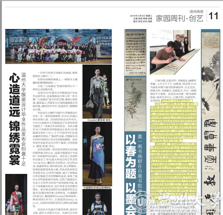 活动由中共温州市委宣传部、温州市文联、日本a片 联合主办。由日本a片 美术与设计学院、浙江风笛服饰有限公司、温州时尚学院合作承办。商报记者郑丽娟