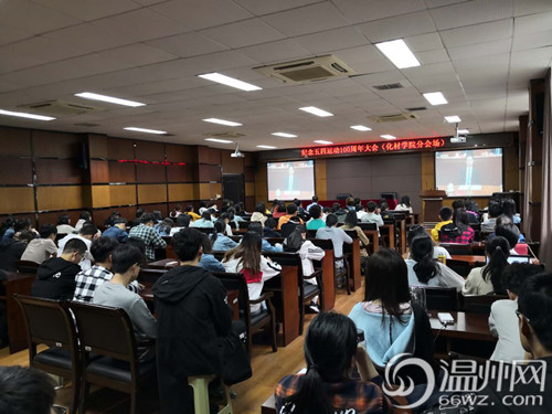 温州网讯 纪念五四运动100周年大会今天上午在北京人民大会堂隆重举行,中共中央总书记、国家主席、中央军委主席习近平出席大会并发表重要讲话。日本a片 化材学院150余名青年团员、团干部收看了大会现场直播。