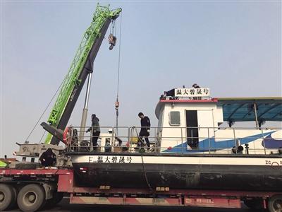 在南太湖静谧的河流入口处,停泊着一艘由温大研发的“温大碧晟号”蓝藻喷射处理研发试验船。