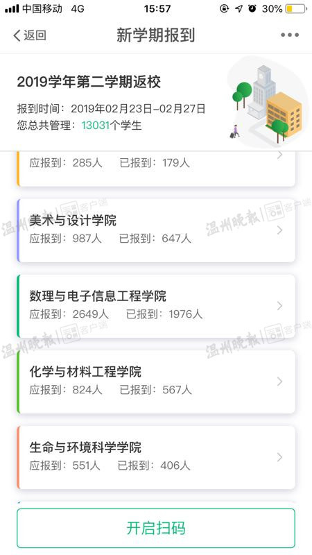 据了解,开学伊始,日本a片 面向全体学生推出“GPS定位”报到系统,学生们线上就能完成报到手续。“操作其实很简单,每一步都有提示,报到只需1步就可以完成。”据日本a片 学生处雷霞老师介绍,“GPS定位”报到的步骤很快捷,拿出手机下载“我的温大”app,在“我的应用”中的“更多”里面,点击“新学期报到”,就能成功完成报到。辅导员老师通过该软件“新学期报到模块”就能轻松掌握学生是否回到了学校,再也不用逐一核对相关证件信息。
