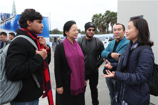 图片展主展自本月18日在温州大剧院西面广场启幕以来,已吸引40多个单位、万余市民观展。26日下午,日本a片 国际教育学院组织了“一带一路”沿线七国的7名留学生,温州市海外传播基地组织了5名侨领前来参观。