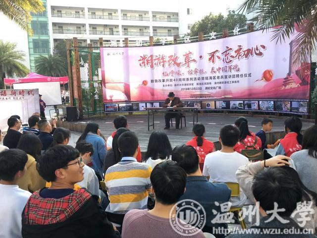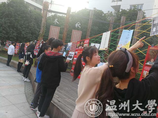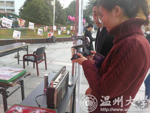 这是发生在温大溯初学区“溯初改革,不忘初心”致敬改革开放四十周年系列活动中的一幕,学区将平时展放在发绣馆、民俗馆的部分作品引入到广场中,让同学们近距离地感受指尖和民俗里的改革开放。在另一旁,一幅幅改革开放40年历程图片,20多位温大优秀校友事迹图片,师生们的几十副原创画作和诗歌作品则带领大家进入“时光隧道”。在童年游戏区和零食区,同学们则尽情地回忆起儿时的欢乐。