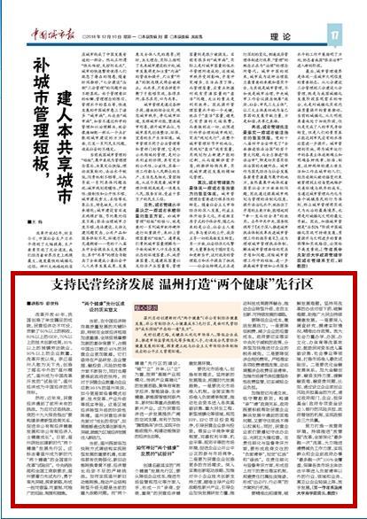 温州启动创建新时代“两个健康”(非公有制经济健康发展、非公有制经济人士健康成长)先行区,是面对民营经济“成长烦恼”开出的一道“良方”。
