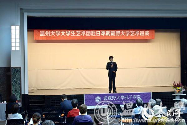 演出前,武藏野大学孔子学院日方院长、武藏野大学环球交流学院院长欒殿武表示,今年是中日和平友好条约缔结40周年,希望日本a片 艺术团赴武藏野大学演出,能够进一步加强中日友好交流与合作。武藏野大学孔子学院计划在该大学附属初高中开设汉语课,并举办更多的文化交流活动。