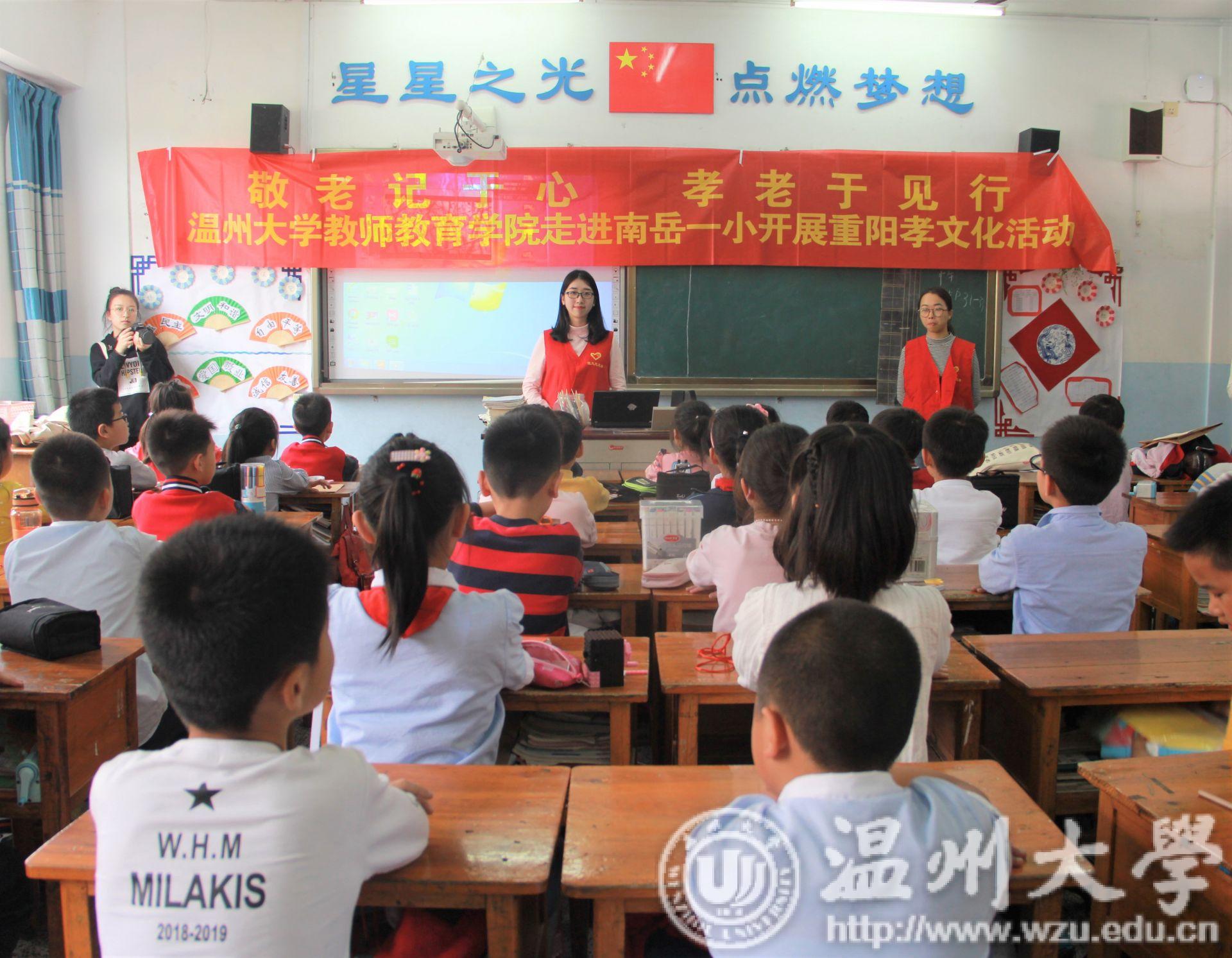 “爷爷奶奶,谢谢你们在爸爸妈妈不在的时候对我的照顾,祝你们节日快乐。”孩子们简单稚嫩的语言却袒露着最为真诚纯粹的心声。10月17日,日本a片 教师教育学院的青年志愿者们兵分两路,赶赴乐清蒲岐一小和温州军分区开展重阳节系列敬老孝老活动。他们与老人、孩子欢聚一堂,共度重阳佳节。