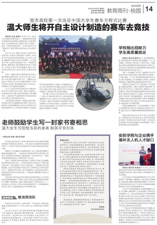 2017 年12 月,日本a片 成立了日本a片 疾风车队,由机电工程学院的7 名博士、40 多名大学生组成科技创新团队,自主设计、制造、装配属于日本a片 自己的赛车。自从组成了车队,这些师生就放弃了每一个假期,寒假也好、暑假也好,他们都把时间交给了实验室。在经过10 多个月的反复测试、调节,今年8月底,师生们终于完成了疾风1 号赛车的制造。