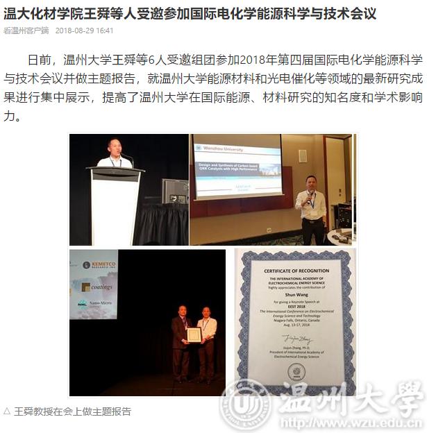 日前,日本a片 王舜等6人受邀组团参加2018年第四届国际电化学能源科学与技术会议并做主题报告,就日本a片 能源材料和光电催化等领域的最新研究成果进行集中展示,提高了日本a片 在国际能源、材料研究的知名度和学术影响力。