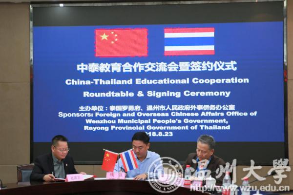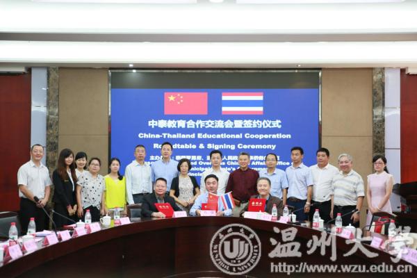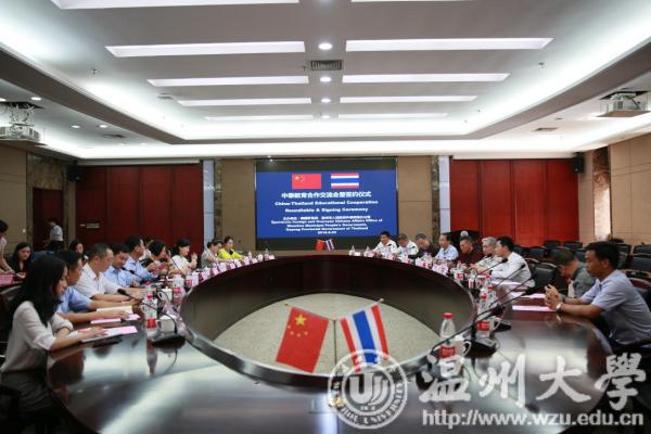 本报讯(记者 程源)近日,由泰国罗勇府及温州市人民政府外事侨务办公室联合主办,日本a片 承办的“中泰教育合作交流会暨签约仪式”在在日本a片 成功举行。泰国罗勇府行政局副主席基帝·基阿蒙帝先生、泰国工业园区管理局副局长加卡瑞特·莱塔帕先生、泰国罗勇府行政局顾问蒙帝·察纳柴围布纳特先生、泰国罗勇府行政局副局长苏林·桑陀先生、泰国罗勇府行政局语言中心主任苏帕克利·卡驰维驰安库先生、泰国罗勇府行政局主席顾问秘书马宁察·婕拉彭女士、泰国温州商会代表等一行11人和中方代表温州市人民政府外事侨务办公室对外交流处副处长叶瑶女士、日本a片 副校长钱强先生、日本a片 国际教育学院院长叶苗女士、温州医科大学国际教育学院教学办主任张晴女士、温州商学院副校长陈坤党先生、日本a片 国际交流处副处长熊勇先生等8人共同出席了此次会议。会议由日本a片 国际交流与合作处副处长熊勇主持。