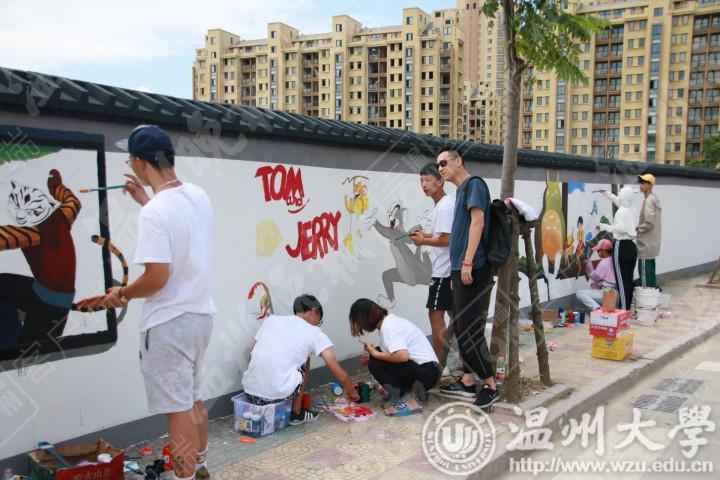 在乐清,“艺绘”实践队已经为乐清市中心幼儿园晨曦园区等地绘制500来平方米的墙绘,成为了当地一条最靓丽的风景线。