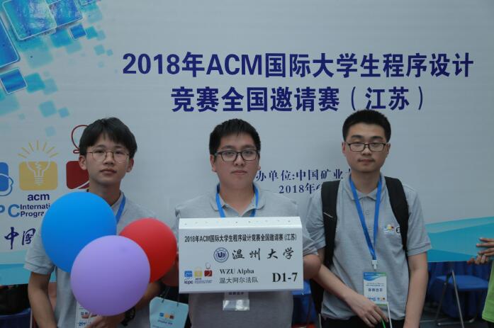 据了解,温大阿尔法队由数电学院学生钟庭彪、孙铤超和李克炼组成,教练是胡明晓老师。根据赛制要求,以三人为团队,限时5小时,在与外界隔绝的环境中合作解决十余个程序设计问题。前五支获奖队伍分别来自上海交通大学、北京师范大学、上海交通大学、吉林大学和南京大学,温大阿尔法队排名第56。 通讯员(林爱菊)