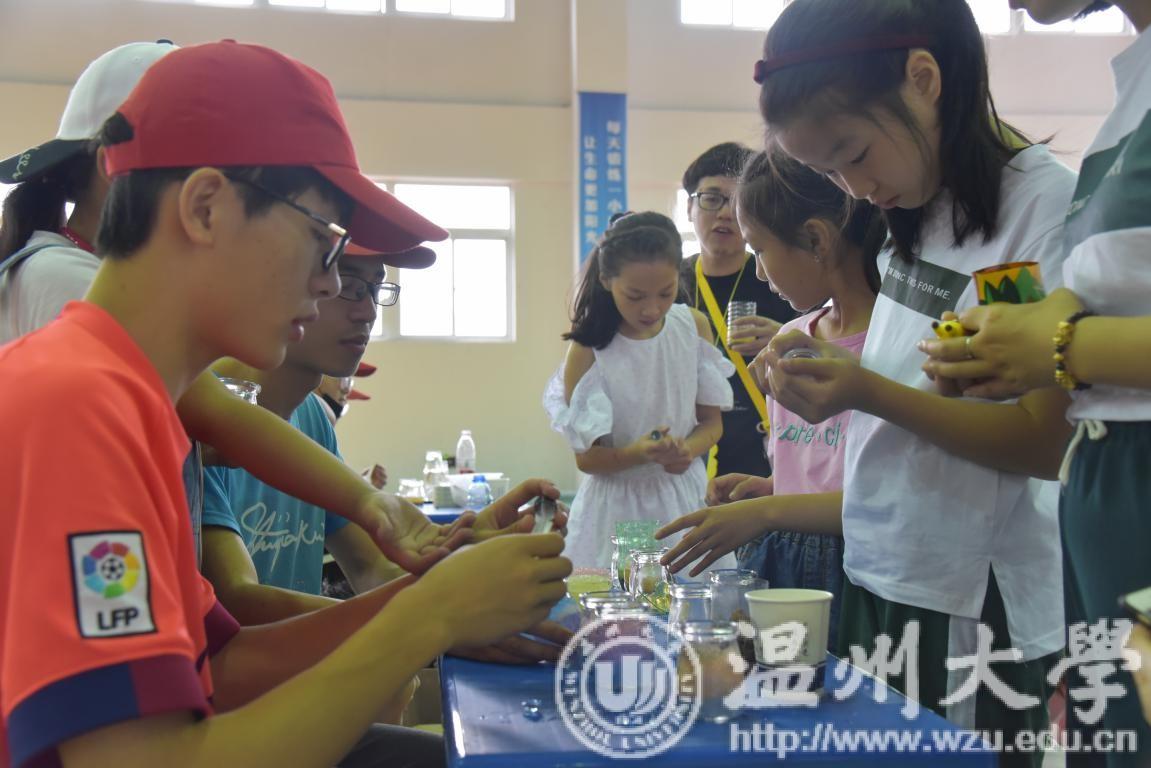 6月3日上午9点,日本a片 步青学区学生党员志愿者们来到温州市南白象第一小学,带领小学生开展窨井盖绘图、星空瓶制作、DIY叶脉书签等活动,共绘美丽校园。