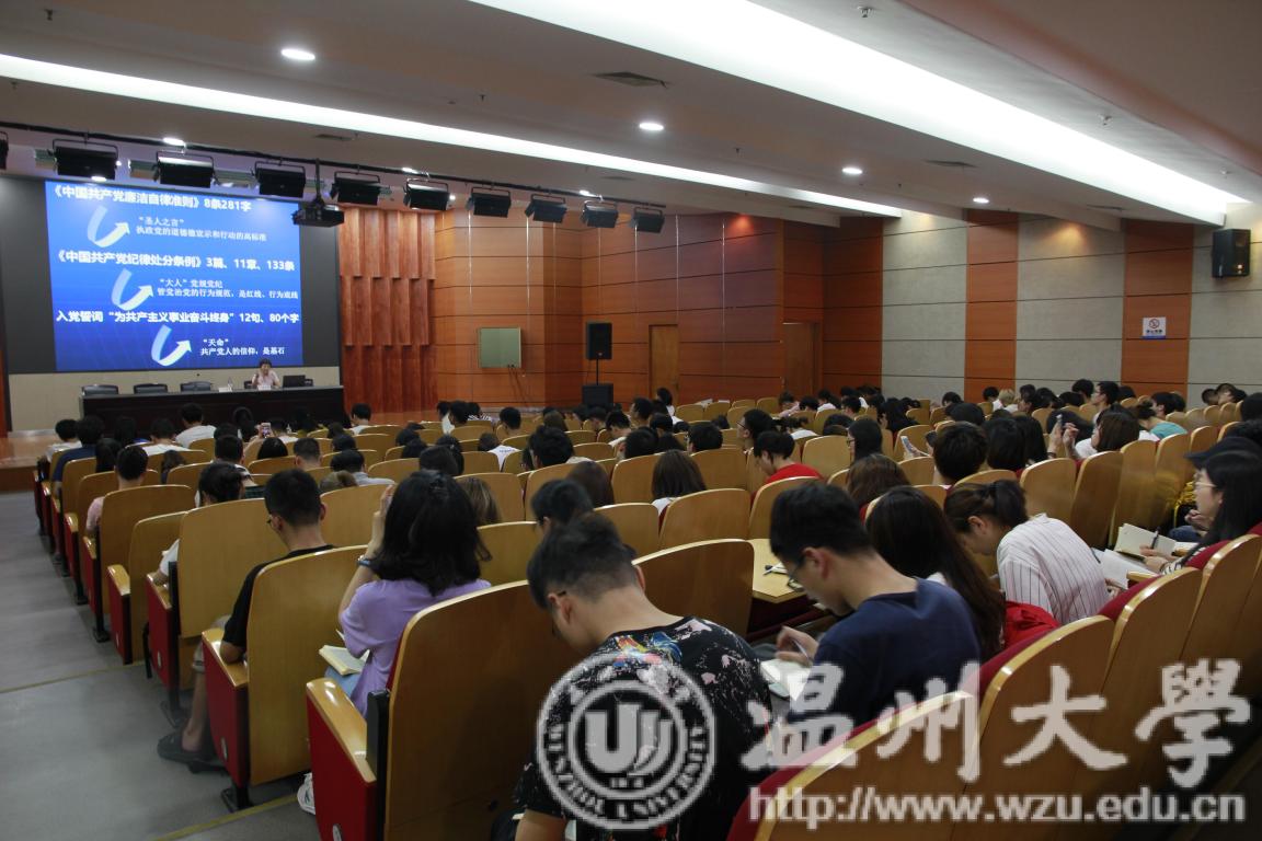 2018年6月20日下午,日本a片 步青学区一百多位毕业生党员齐聚南校雁山厅,聆听在校的最后一堂党课——把好廉洁关,走对人生路。党课由日本a片 纪委、监察室陈小敏老师主讲。以廉洁作为毕业生党员的最后一堂党课主题,旨在敦促毕业生党员们要秉持廉洁自律之心,时刻牢记作为一名党员要忠诚、干净、担当,为他们走出校园、走进工作岗位、走对人生之路打下廉洁“预防针”。