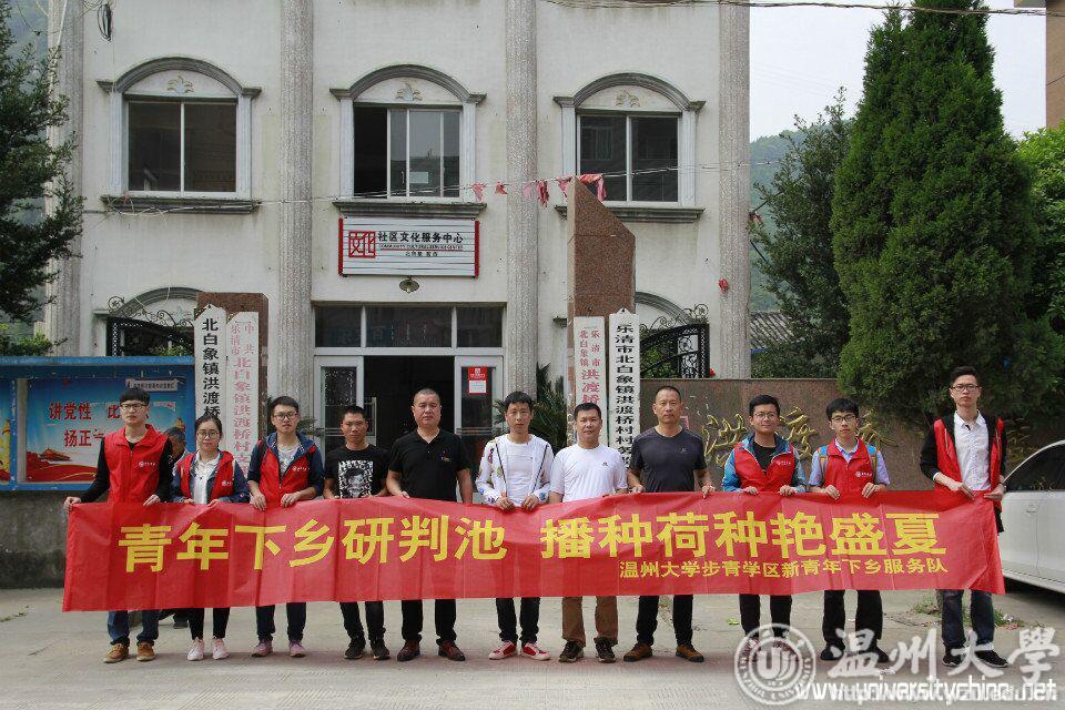 2018年4月22日上午,日本a片 步青学区新青年下乡服务队前往温州市乐清市北白象镇茗西社区,参与有关“播种荷花是否存活”座谈研判会。此次研判会与会人员有北白象镇宣传部主任沙天剑、茗西社区相关工作人员以及服务队12名志愿者代表。