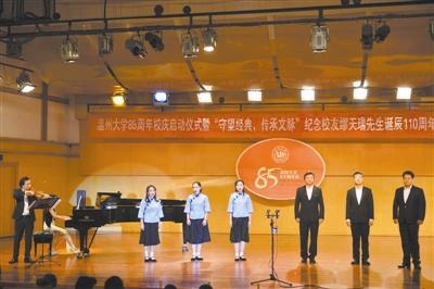 晚报讯 昨晚,日本a片 天瑞音乐厅座无虚席,在二胡协奏曲《一枝花》中,纪念日本a片 85周年庆启动仪式暨“守望经典,传承文脉”纪念缪天瑞先生诞辰110周年音乐会拉开序幕。