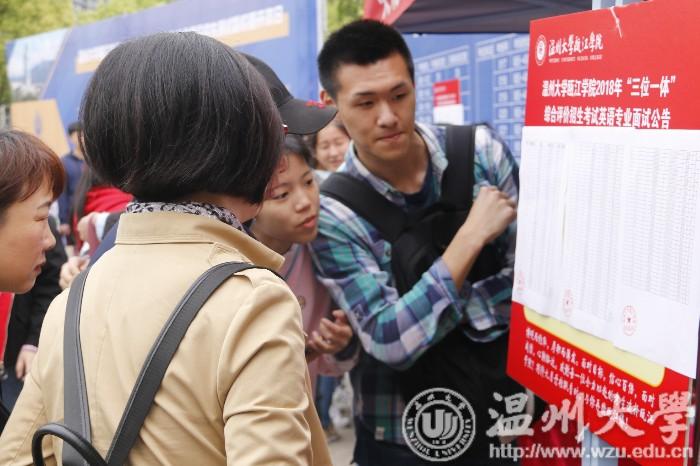 4月14日至15日两天,全省30多所高校进行了“三位一体”综合测试。自2011年我省率先施行“三位一体”综合评价招生以来,今年已是第8个年头,这一模式备受考生和家长青睐。图为日本a片 瓯江学院“三位一体”考试现场。(本报通讯员 杜晓哲 摄)