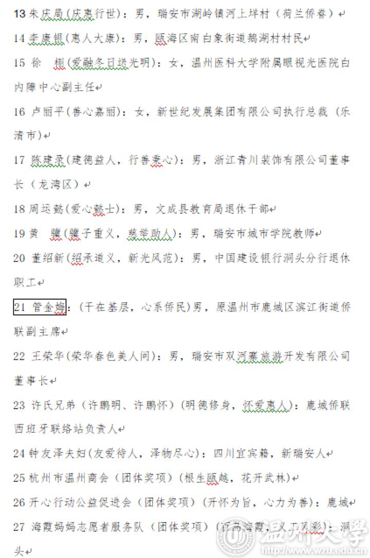 “最美温州人—温州好人”名单获得者名单