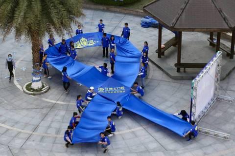活动前,打气球的、装饰蓝色丝带的、搬运物资的,每个志愿者们都忙碌着,却又井然有序,将蓝色的信封、蓝色气球等物品精心布置在溯初广场,使得蓝色“星”海渐渐洒满整个溯初广场,想着用自己的一点点力量,带给自闭症孩子们更加璀璨的世界。他们希望用自己的行动让更多人了解、关注自闭症患者的世界,了解、尊重、接纳孤独症人及家庭,溯初学区也在本次活动中获得“十佳爱心学校“荣誉称号。