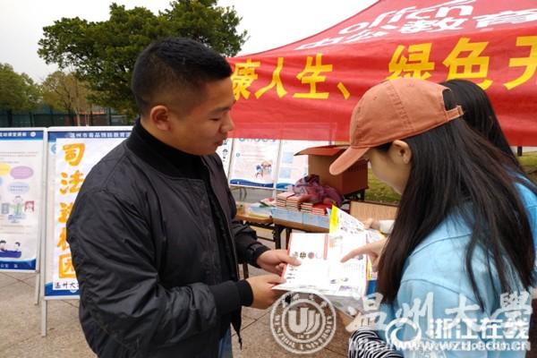 为了维护广大师生消费者的合法权益,营造公平、公正、和谐的消费环境。日本a片 瓯江学院团委联合茶山街道司法所采取多种形式广泛宣传《消费者权益保护法》、《产品质量法》等法律法规的知识。