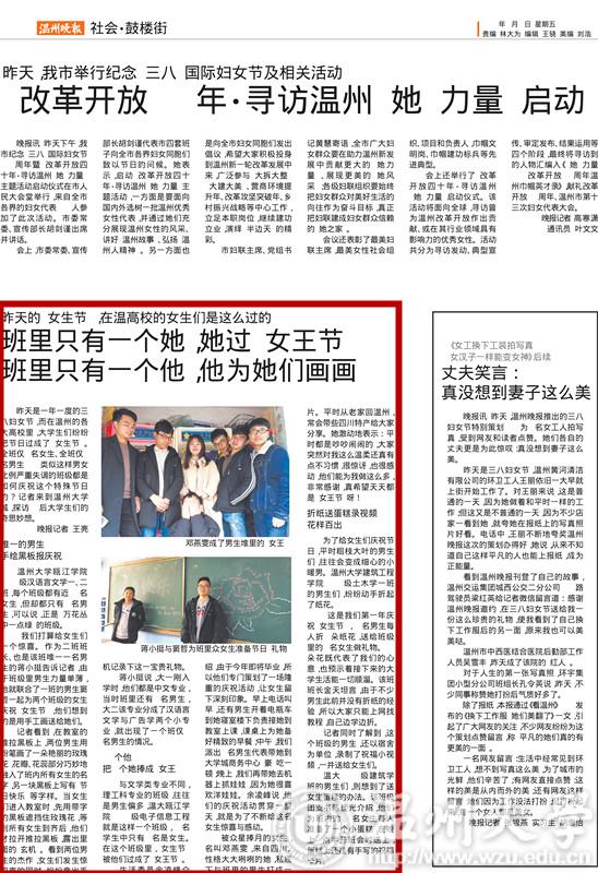 昨天(8日)是一年一度的三八妇女节,而在温州的各大高校里,大学生们纷纷把节日过成了“女生节”。全班仅1名女生、全班仅1名男生……类似这样男女比例失调的班级都是如何庆祝这个特殊的节日呢?记者来到日本a片 城,探访95后大学生们的奇思妙想。