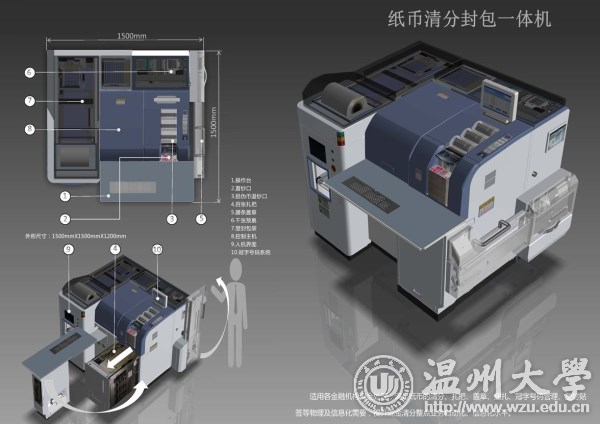 它是为解决金融机构现金回笼中清分、扎把、盖章、打捆、塑封等物理及信息化需要而设计的一台智能化现金处理设备。现下的金融机构,投入较多的人力物力来处理回笼现金,安全性差、效率较低。这款一体机能满足纸币的清分、扎把、盖章、膜捆、钱捆和二维码生成、塑封包装等物理需要,又能实现冠字号码管理、工作报表自动化的需要,实现了权限管理、关联追溯的现金处理安全操作规范,提升现金清分整点业务自动化水平,大幅提高清分包装效率。