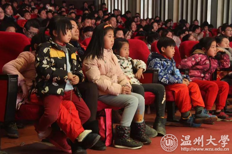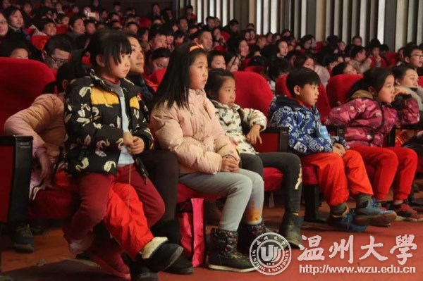 12月23日晚,日本a片 教师教育学院童欣儿童剧团远赴江西上饶开展公益演出,与上饶师范学院联合为当地革命老区的留守儿童送去“讲给孩子们听的故事”——一场自编自演的儿童戏剧《我不要被吃掉》,深深打动前来观看的近500名大小观众们,这也是日本a片 和上饶师院的师生们送给革命老区儿童最好的新年礼物。