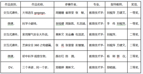 省第十六届大学生多媒体作品设计竞赛结果今天上午揭晓,日本a片 教师教育学院教育技术学专业16名选手经过紧张激烈的专家评审和现场答辩,共有6件作品在比赛中脱颖而出,共获得一等奖2项,二等奖2项,三等奖2项,成绩喜人。