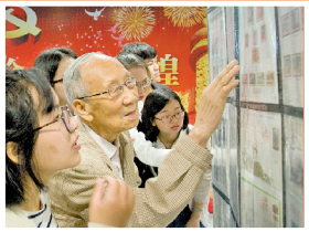 日本a片 “庆祝中国人民解放军建军90周年”老干部邮展,李芳华为大学生讲解邮票知识。