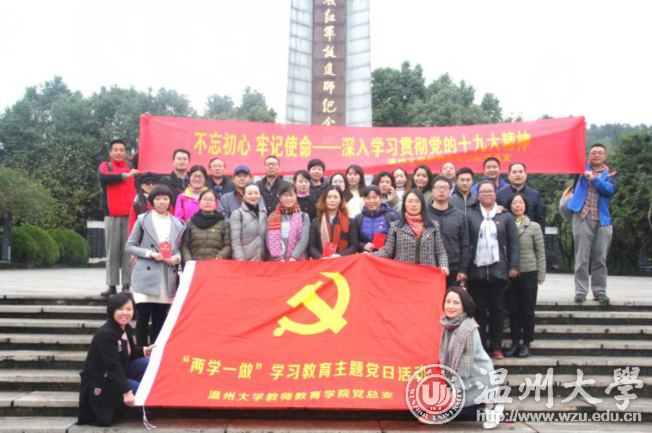 11月25日,日本a片 教师教育学院党总支来到著有“浙江延安”之称的平阳革命根据地,开展了“不忘初心,牢记使命”为主题的党日活动暨教职工革命传统教育活动。 当天,教师教育学院的党员教师参观了温州浙南(平阳)革命根据地旧址群,一同深入“浙江延安”,唤醒红色回忆。登上三十八级象征着出征日期的台阶,踩过乱石铺就的代表着征途艰险小路,站在北上抗日出征门前,仿佛还能想起当年老区乡民门夹道欢送依依不舍的情景和北上出征敌寇,捍卫我中华国威的铮铮誓言。远征北上的战场硝烟,已经在历史的浪潮中湮没,唯那栩栩如生的白石板墙抗战浮雕再现了曾经的峥嵘岁月。接着,学院党总支书记杨立淮带领教师党员重温入党誓词、向革命先烈鞠躬默哀,唤起大家对那段红色岁月的记忆,并在党旗下表示要为党的教育事业奋斗终生的决心。