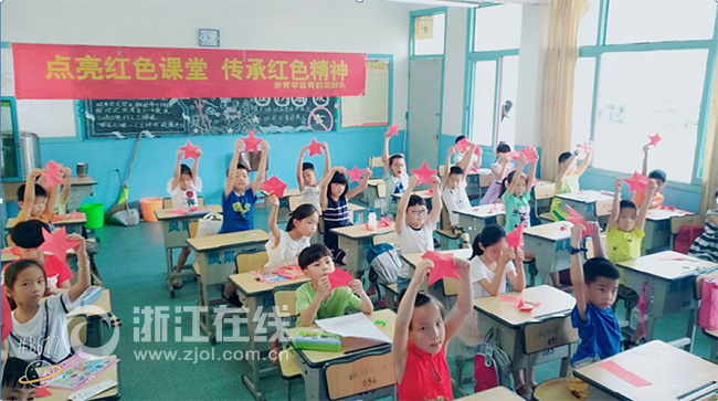 浙江在线7月11日讯(浙江在线记者 欧阳贝璐 通讯员 王召收)近日,日本a片 步青学区“青韵”暑期社会实践队深入平阳县腾蛟镇,开展为期十五天的“红色教育”主题支教活动,为当地小学生带来一堂堂生动活泼的红色教育课。