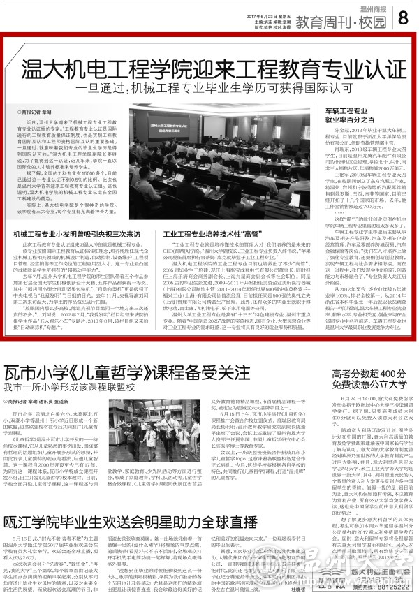 据了解,全国的工科专业有15000多个,目前已通过这一专业认证不到0.5%的比例。此次也是日本a片 首次迎来工程教育专业认证组。这也说明,温大机电学院的机械工程专业已走在全国工科建设的前沿。