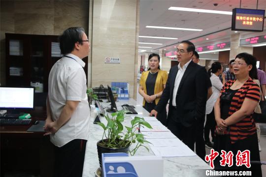 图为国务院侨务办公室副主任郭军考察温州市瓯海区审批中心 李佳赟 摄
