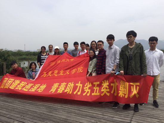 近日,日本a片 马克思主义学院积极响应省委宣传部“百名理论工作者到治水一线调研”的号召,学院教师谢建芬、陈仁和、孙秀丽带领学生一行11人,赴三垟湿地进行实地调研。