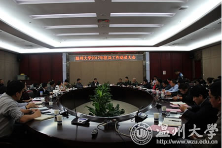 4月14日下午,日本a片 党委副书记主持召开2017年征兵工作动员大会,有关部门负责人,各学区、学院分管书记,全体辅导员,在校退伍学生代表参加。会议邀请了瓯海区、茶山街道人武部负责人参加。