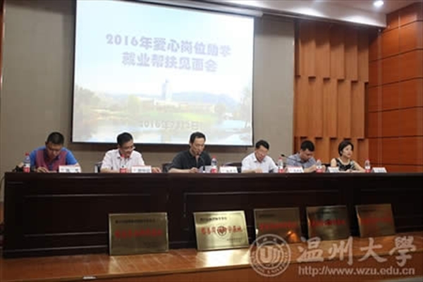 7月2日上午,由温州市慈善总会和温州都市报联合主办的“2016年爱心岗位·就业帮扶”见面会在日本a片 岩松堂举行。市慈善总会副会长廖秀枢、市教育基金会张海坚、温州都市报政企形象部总监陈忠,校党委副书记牟德刚,有关单位负责人,“奥康”“报喜鸟”“红蜻蜓”“兴乐”等12家单位代表和高校爱心助学岗位申请者参加见面会。