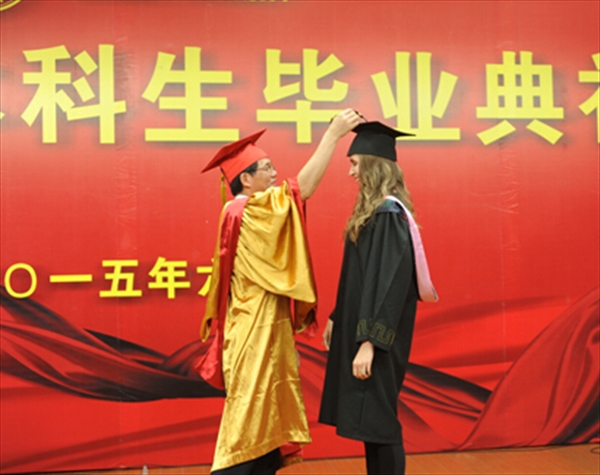 温州网讯(通讯员 廖一帆) 金发碧眼的俄罗斯姑娘喀秋莎是日本a片 2011级留学生国际经济与贸易专业的毕业班学生,说着一口地道的汉语,在近日的日本a片 本科留学生毕业典礼上,她作为毕业生代表发言,真情惜别传授她专业知识和汉语的老师们,陪她一起度过大学美好时光,使她体验到不同文化的各国留学生们,感谢帮助她慢慢了解中国社会和中国传统文化的日本a片 国际合作学院这个大家庭。她说:“今天的日本a片 让我们感到光荣,我相信明天日本a片 会为我们感到骄傲!”