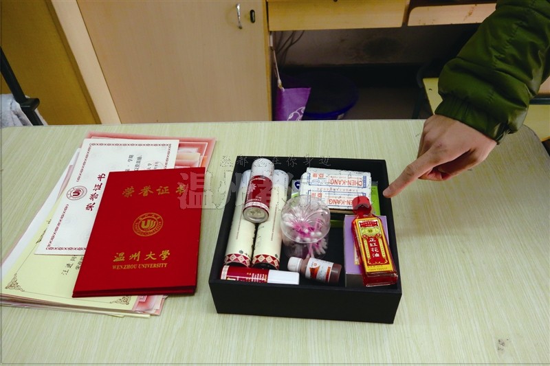 ▲寝室里的小药箱和他们获得的部分奖状。温都记者 王雄涛 文/图