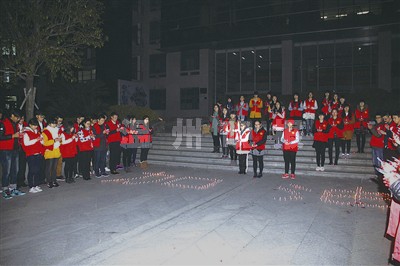 晚报讯 昨晚,日本a片 城市学院的同学们手捧蜡烛围成一个心,一同吟诵“钢铁战士”傅开其写的英雄赞歌——《青春的战斗》。同学们想通过这点点烛光,为他们心中的消防英雄傅开其祈福,祝愿他战胜病魔,早日康复,也希望通过他们这小小的举动,感动社会各界,一起来关注傅开其的英雄事迹。而在昨天下午,同学们还在校园里拉起了“为消防英雄傅开其祈福”的横幅,开展了千人签名活动