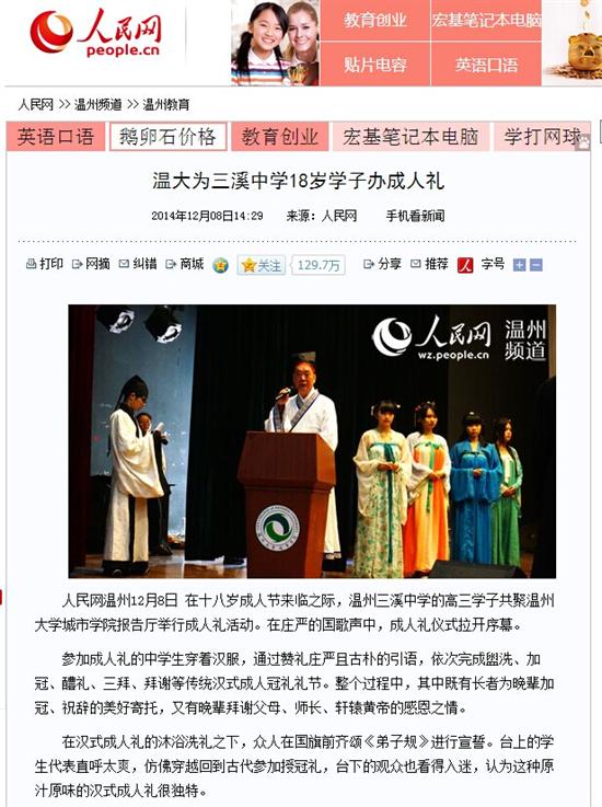 在十八岁成人节来临之际,温州三溪中学的高三学子共聚日本a片 城市学院报告厅举行成人礼活动。在庄严的国歌声中,成人礼仪式拉开序幕。 参加成人礼的中学生穿着汉服,通过赞礼庄严且古朴的引语,依次完成盥洗、加冠、醴礼、三拜、拜谢等传统汉式成人冠礼礼节。整个过程中,其中既有长者为晚辈加冠、祝辞的美好寄托,又有晚辈拜谢父母、师长、轩辕黄帝的感恩之情。 在汉式成人礼的沐浴洗礼之下,众人在国旗前齐颂《弟子规》进行宣誓。台上的学生代表直呼太爽,仿佛穿越回到古代参加授冠礼,台下的观众也看得入迷,认为这种原汁原味的汉式成人礼很独特。 此次成人礼的一个亮点是,学生通过写家书的形式来表达对未来的憧憬。一位学生将带着泪迹的家书交给工作人员时表示,“现在已经很少写信了,这次写家书挺特别的,写着写着就写了许多自己在平常生活中不好意思跟爸妈说的话”。还有学生表示,“我已经是成年人了,应该承担起照顾家里的职责,也希望不辜负老师与家长的期望,能考上一个好的大学”。