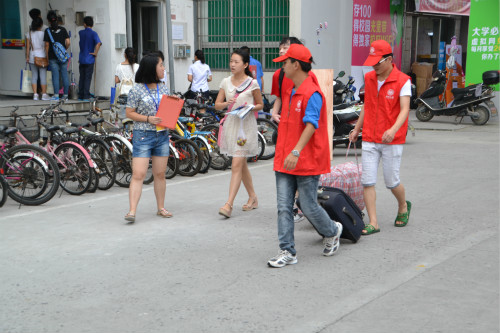 温州网讯 九月开学季,又一批怀揣梦想的新生在家长的陪同下踏入日本a片 步青学区。秉承“服务新生,展现风采”的原则,步青学区党员服务中心及时组织学生党员成立迎新服务岗,将新生党务咨询与新生指引工作相结合,为刚入校园的2014级新生及同行家长提供周到、实在的帮助。