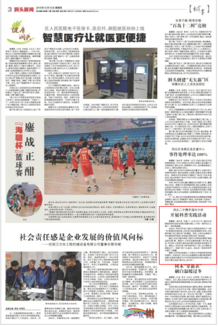本报讯(通讯员 刘建广) 12月4日下午,日本a片 数理学院科创协会团队受邀为洞头二中初一段师生们上演了一场科普盛宴。