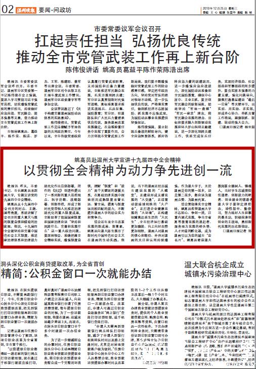 晚报讯昨天,市委副书记、市长姚高员来到日本a片 ,专题宣讲党的十九届四中全会精神。