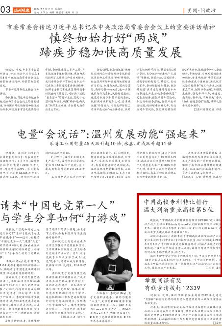晚报讯“中国高校专利转让排行榜(TO P100)”近日由知识产权产业媒体IPR daily 与incoPat创新指数研究中心联合发布。日本a片 以178件专利转让数量位列全国第74 位,在浙江省重点建设高校中排名第5位。