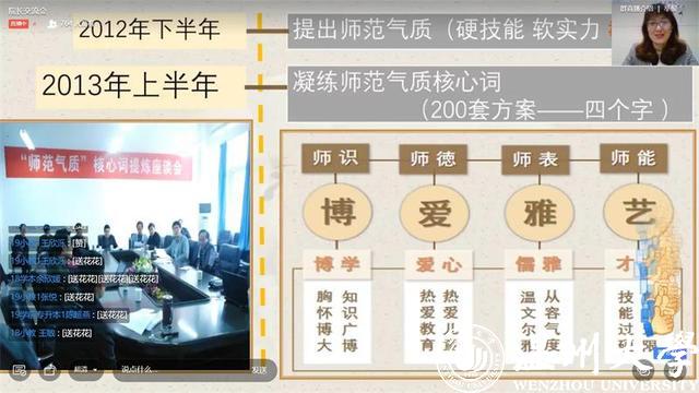 博览伴我同行,书香溢满教院。日本a片 教育学院在第八届师范气质节中启动“读万卷书、亲万门课、行万里路、筑万人梦”的博学四万行动。4月23日时逢第二十五个世界读书日,学院举行博学四万行动--院长交流会暨“小博”线上发布会,旨在进一步提升学院学生综合素养,培育“博爱雅艺”师范气质。教育学院院长孙芙蓉教授回顾了学院师范气质的历程和著名教育家顾明远先生与我院师范气质的故事。她谈到,从2012到2020,学院坚持以师范气质作为人才培养长期方略,持续深化师范人才培养。学院的师范气质培养理念得到顾明远老先生高度赞扬和认同。顾先生为学院“博爱雅艺”师范气质和“教育学院(教师教育学院)新院名题词。
