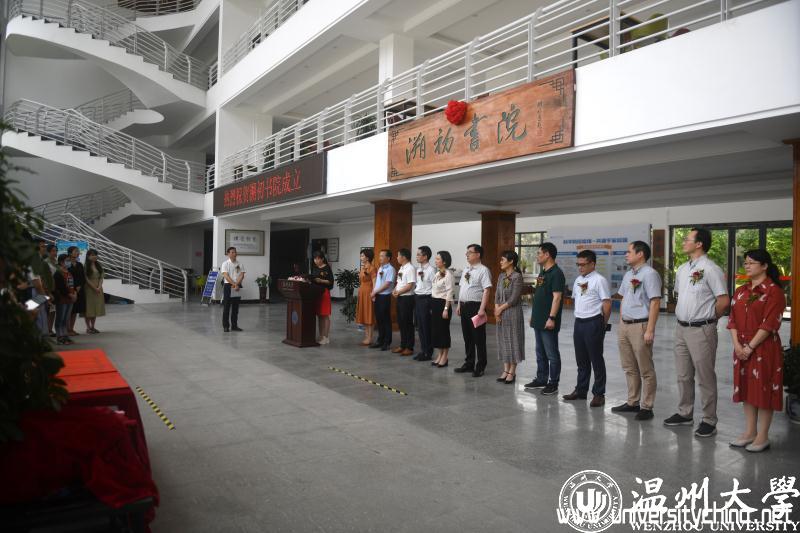 仪式由教育学院党委书记何毅主持,教育学院院长孙芙蓉介绍溯初书院的成立背景及概况,徐和昆副校长和学院领导共同为溯初书院揭牌并致辞。揭牌仪式上还宣读了北京师范大学教育学部、长三角高校书院联盟及江苏师范大学敬文书院等单位的贺信。贺信中,华东师范大学孟宪承书院、江苏师范大学敬文书院等兄弟书院对日本a片 溯初书院的成立致以最热烈的祝贺,并衷心祝愿溯初书院秉持“光大国族、造福人群”的温大精神,培育更多德智体美劳全面发展的优秀人才。
