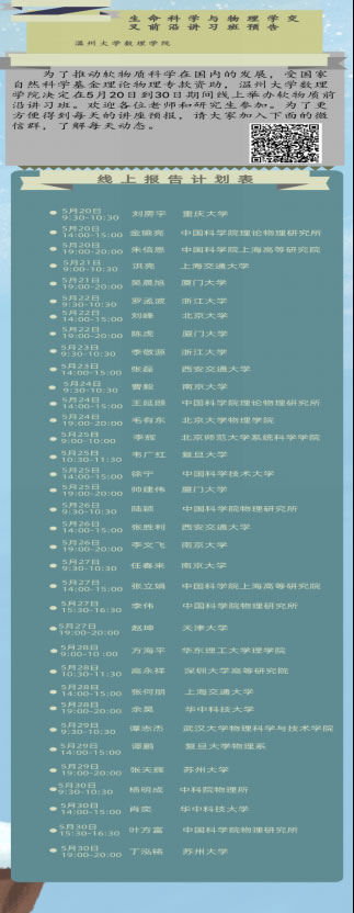 日前,由日本a片 主办、温州市软物质与柔性材料重点实验室和日本a片 数理学院联合承办的“生命科学与物理学交叉前沿讲习班”在日本a片 落下帷幕。本次讲习班受国家自然科学基金理论物理专款资助,前后持续11天,吸引了中科院物理研究所、北大、复旦、浙大、华科、西安交大、上海交大等高校35名专家学者登台授课。