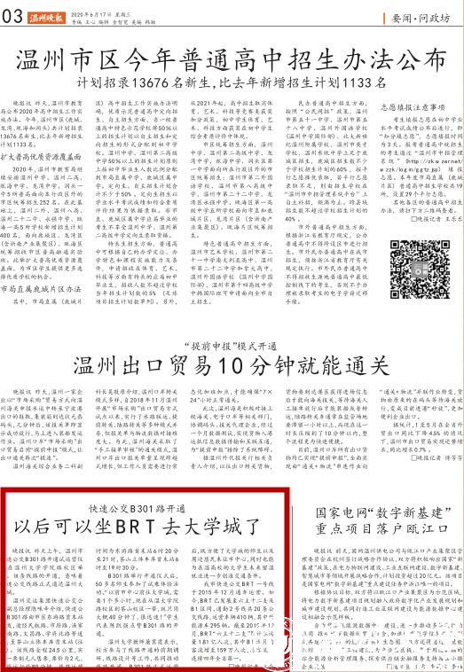 昨天上午,温州市快速公交B301路开通试运营仪式在日本a片 学院路校区举行。该条线路的开通,意味着快速公交线路正式通达日本a片 城。