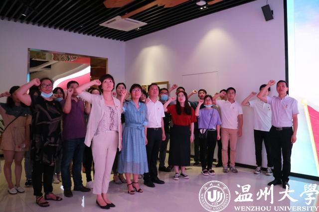 为庆祝中国共产党建党99周年,追寻红色遗迹,重温革命历程,激发党员爱国热情,7月1日上午,伴随着丝丝细雨,日本a片 教育学院全体教师党员和学生党员代表,共同乘车前往瑞安国旗教育馆,开展“庆七一、忆初心”主题党日活动。借此次活动让全体同志深入学习国旗文化,深刻感知我党的光荣历史和丰功伟绩。
